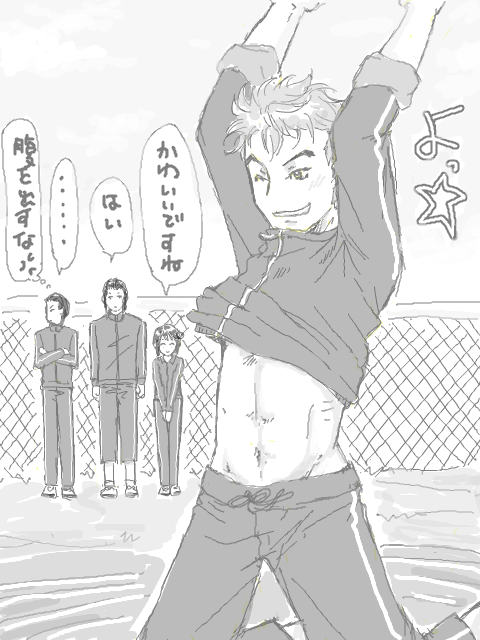 そして飛んだり跳ねたりした時にジャージがめくれて腹が見えるんですよ。これ必須!